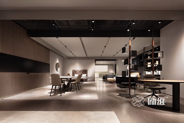 主體基調(diào)上依然是高端客戶,但是它所面向的群體會比和義展廳的更廣一點,會向下延伸一部分,因為頂尖的豪宅畢竟是少數(shù),如果真正能擴展到中產(chǎn)階級的部分,這個市場就很大,在設計家居展廳的時候,我們考慮到作為專業(yè)市場,他的客流群體有很大一部分是大眾群體,所以我們也不會打造得過于奢侈,就換了一種風格,比較偏向于現(xiàn)代,接受人群會更廣一點,造價也可以下來一部分,這個價格適合于各地經(jīng)銷商作為展廳的裝修標準,這樣更接受,容易推廣。所以家居展廳的設計還需要考慮所在環(huán)境和業(yè)態(tài),來針對特定的消費情況和角度考慮設計。