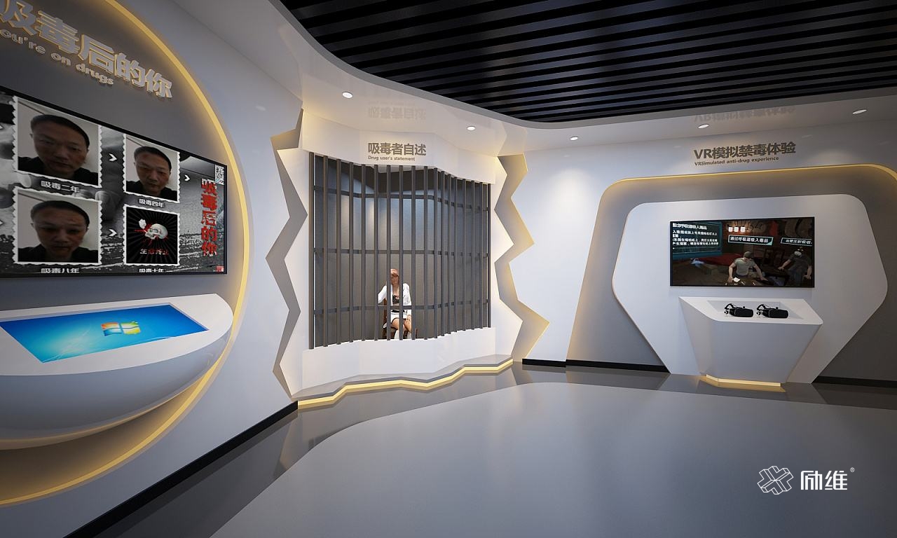 禁毒教育展覽應(yīng)該很有趣。因此,在空間的規(guī)劃和設(shè)計(jì)中,必須明確每個(gè)展館的目標(biāo)。一個(gè)特定的展覽陳列提供了有關(guān)毒品危害和預(yù)防藥物濫用的信息。通過(guò)個(gè)性化展覽的交互式軟件,用戶也將在這里獲得有趣的體驗(yàn)。