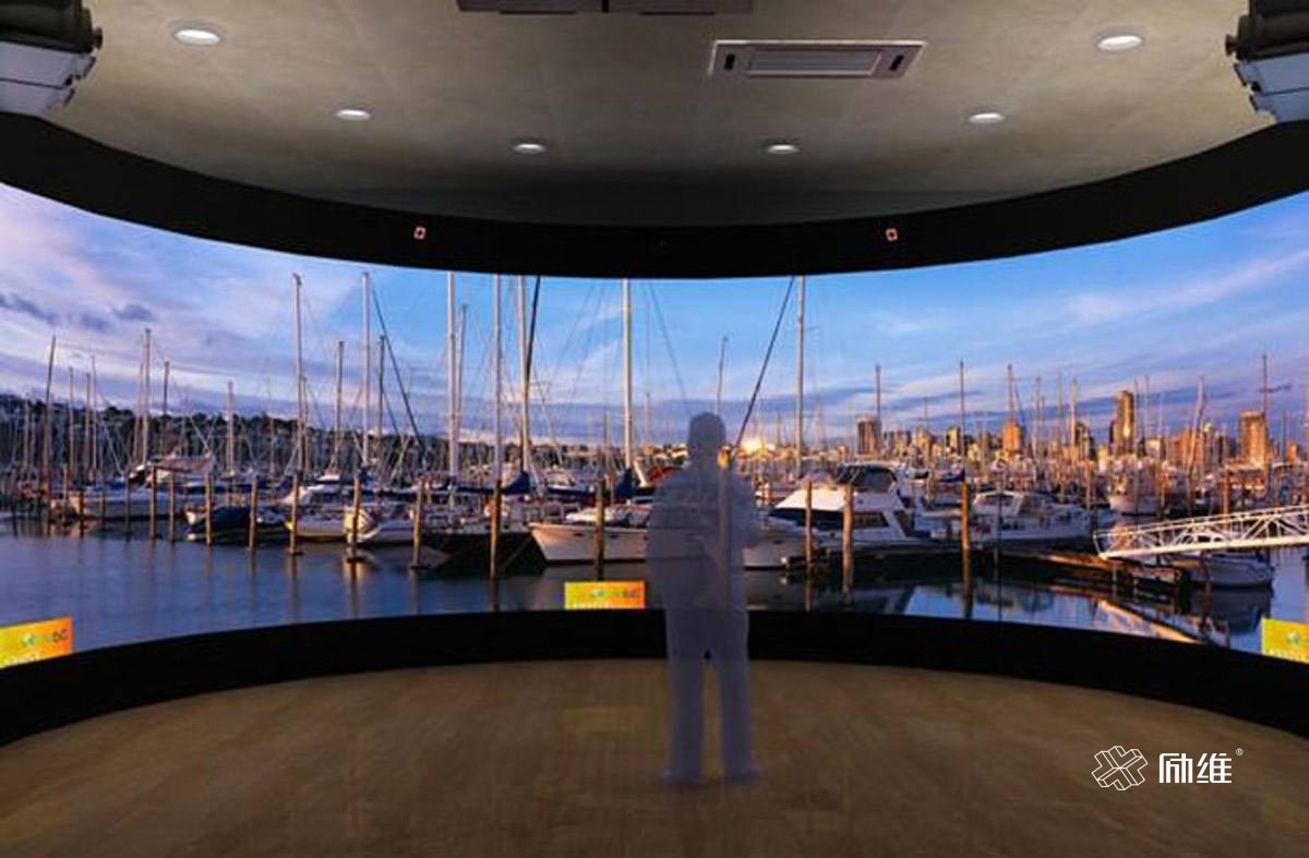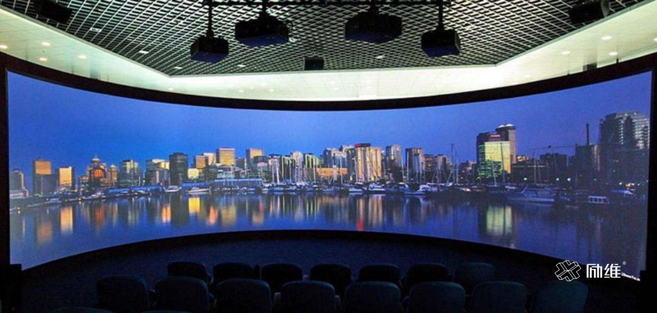 在部分藝術(shù)館展示中,采用環(huán)幕投影方式打造沉浸式投影空間。在投影融合互動(dòng)的支持下,用戶可以在這里欣賞自然流暢的視頻畫面,通過圍觀環(huán)境,讓用戶沉浸在展示中,提高展示價(jià)值。