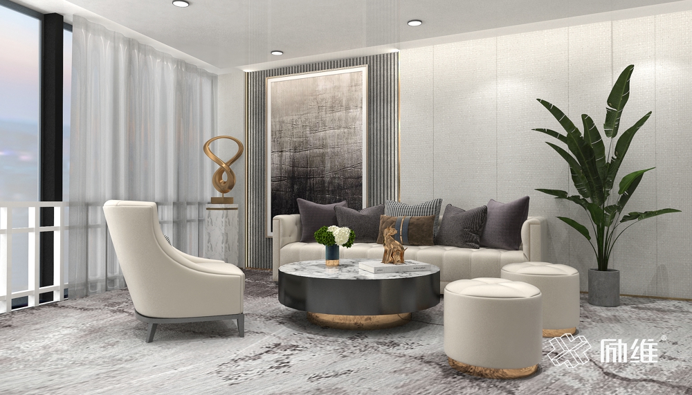 為了體現(xiàn)融創(chuàng)“臻享品質(zhì)商務(wù)生活”的主題,在色彩的選用上,設(shè)計(jì)師采用了黑白灰的商務(wù)基調(diào),帶來(lái)空間的層次感,上演辦公空間的城市變奏曲。通過(guò)輕奢端莊的質(zhì)感與木紋、大理石等元素的搭配,營(yíng)造出一個(gè)獨(dú)特的高端空間感,保持了融創(chuàng)集團(tuán)一貫高端、精致極簡(jiǎn)的調(diào)性。