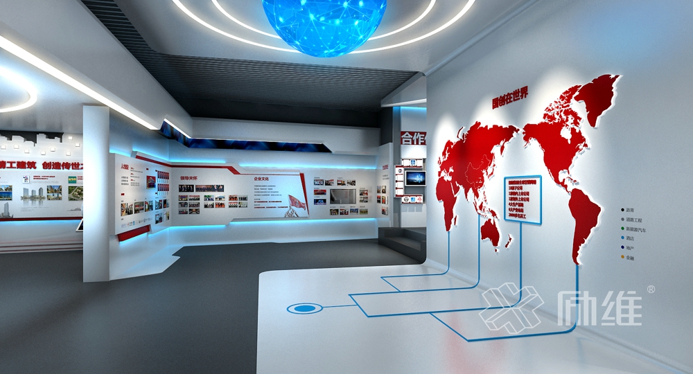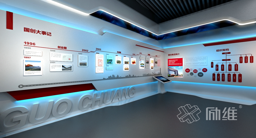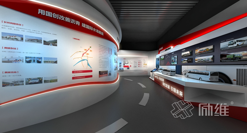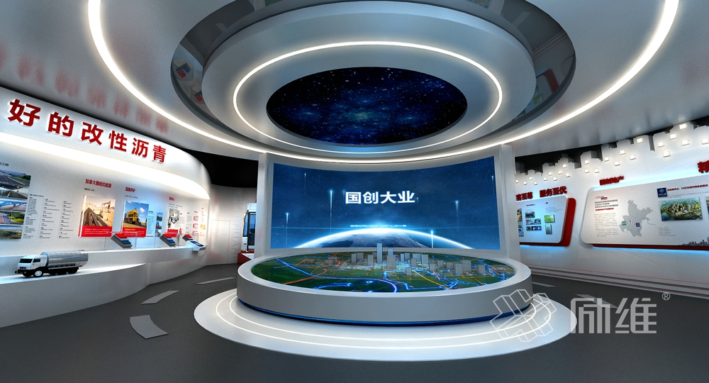 以大氣沉穩(wěn)、現(xiàn)代簡約的總體基調(diào),引入國創(chuàng)集團(tuán)行業(yè)的市場特性,通過道路流線的靈動(dòng)感整體布局,在延伸的空間演繹出國創(chuàng)每一條道路的精彩。整個(gè)展廳內(nèi)容由民族驕子、創(chuàng)新勃發(fā)、聚力騰飛、使命有責(zé)、致遠(yuǎn)前行5大部分內(nèi)容組成,遵循虛實(shí)結(jié)合、動(dòng)靜結(jié)合、遠(yuǎn)近結(jié)合的基本原則,突出“創(chuàng)新、務(wù)實(shí)、誠信、進(jìn)取”國創(chuàng)精神。